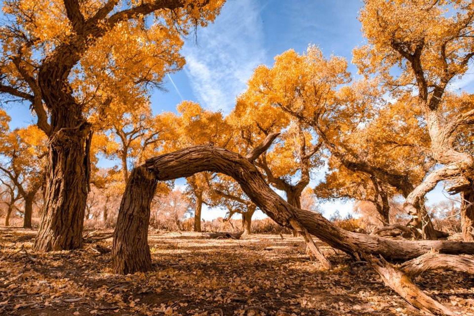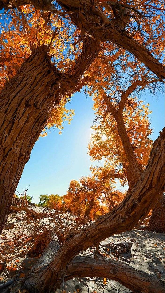 从尉犁县出发,塔里木胡杨林是秋日南疆的“金色童话”。这里是世界上面积最大的胡杨林,秋日里,百万亩胡杨全部染成金黄,阳光穿过树叶,在地面投下斑驳的光影,塔里木河蜿蜒其间,河水倒映着胡杨的身影,乘船顺流而下,两岸的胡杨像金色的卫士,守护着这条“母亲河”。走在胡杨林里,偶尔能看见倒地的胡杨,即使枯死也千年不倒,倒后也千年不腐,让人惊叹于生命的顽强。