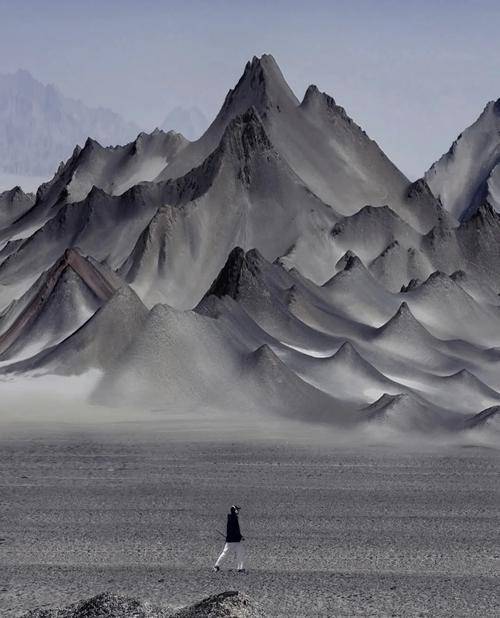 从敦煌出发,向更荒芜的西北行进,黑独山是闯入“月球表面”的惊喜。这里没有草木,只有黑色的火山岩与白色的盐碱地交织,地表沟壑纵横,像被岁月啃噬过的痕迹,无人机升空,画面里只有纯粹的黑与白,没有一丝杂色,随手拍都是科幻电影里的外星场景,仿佛置身于另一个星球。