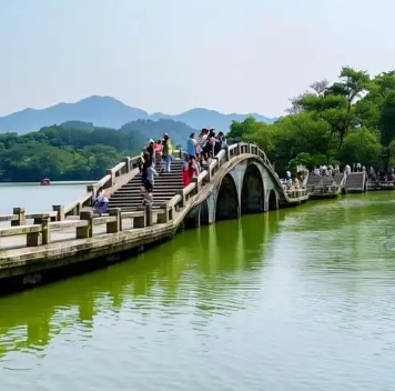 潮州西湖公园,正门是一座石牌坊,牌坊下面一座跨湖桥,湖边有栋白色的洋楼格外显眼,当年周总理在这驻扎休息,叫避寒楼。也是一处风景秀丽的去处。