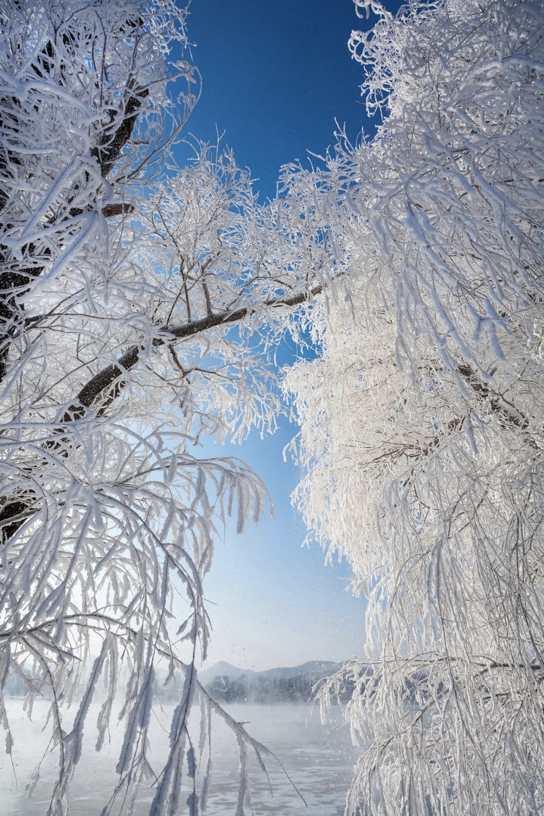 D2:吉林市~雾凇岛~镜泊湖该日需要早起。雾凇出现的概率受各种因素具备才能形成,每天吉林市都会在第一时间发每个地方布雾凇指数,我们将根据预报去最好的地方,当然还是以雾凇岛为主。清晨的雾凇岛才是最美的(天气影响,看运气喽)。雾松岛是松花江上冲击而成的江中小岛,因雾凇多且美丽而得名,常能拍出风光大片,受到大批摄影爱好者的追捧。--每到寒冬,不冻的江水中升腾的水雾遇冷,在树上凝结为霜花,从远处看正是传说中的玉树琼花,美不胜言。