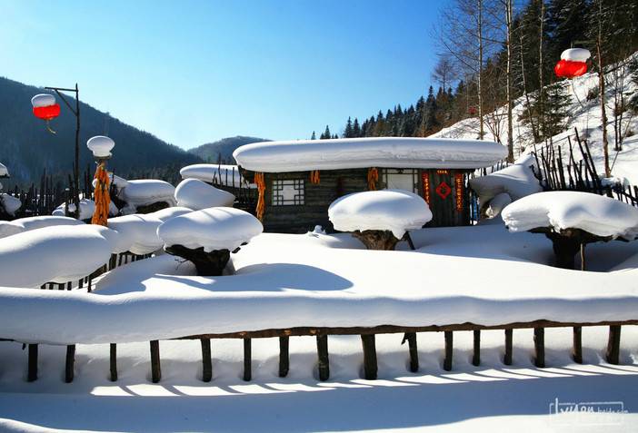 雪乡从初冬冰花乍放的清晰到早春雾淞涓流的婉约,无时无刻不散发着雪的神韵,因此得名-中国雪乡。