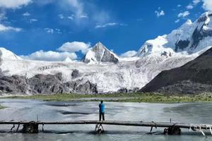 来到三色湖附近的【普玉冰川】,冰川湖上方就是雪山,山形神似稻城亚丁的央迈勇神山。