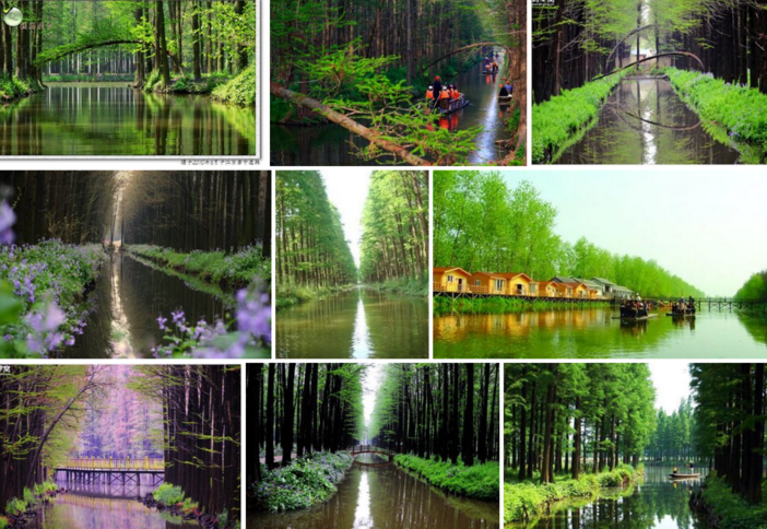 李中水上森林公园:“林中有水─鱼儿跳跃;林中有鸟─百鸟歌唱”的水乡美景。木质栈道曲径通幽,木桌木椅野趣盎然,石桥卧波,亭台凌云。眼前的湖面,水平如镜,蓝天、白云、绿树、飞鸟。倒影蹁跹,光影流离。两旁的树林姿态各异,还被冠以许多生动贴切的名字,如“好汉林”,“野猪林”,“糊涂林”等等。意趣风致,令人游兴顿增。李中水上森林公园正张开怀抱,迎接来自四面八方的你,来共同享受这一片回归自然,畅爽生机的生态福地。黄昏时分,百鸟归巢,遮天蔽日,景象蔚为壮观。