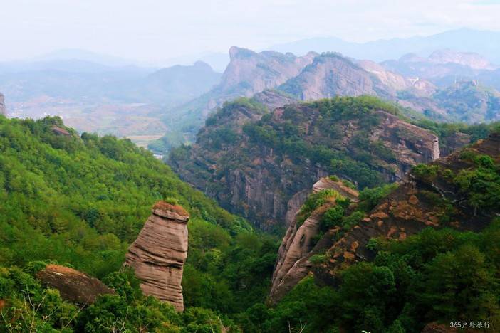 - 虎啸岩 + 一线天:虎啸岩因风穿洞如虎啸得名,一线天狭窄险峻,丹霞奇观。