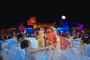 下船后乘坐随船包车前往临沂琅琊古城,路上服务区早、午餐,下午到达临沂入住后自由活动。古城依托琅琊文化与齐鲁文脉打造,重现秦汉至魏晋时期的建筑风貌与市井场景,街巷古朴雅致,人文气息浓厚。夜晚的实景演出气势恢宏,以历史故事为脉络,融合光影与舞台艺术,生动再现琅琊风云与名士传奇,带来沉浸式的历史体验。游客流:游览古城,人多有人气。