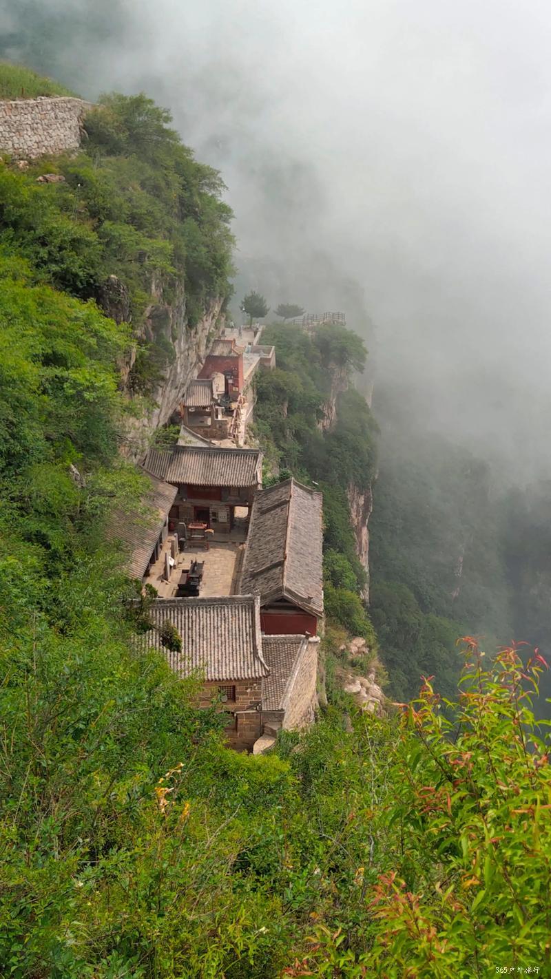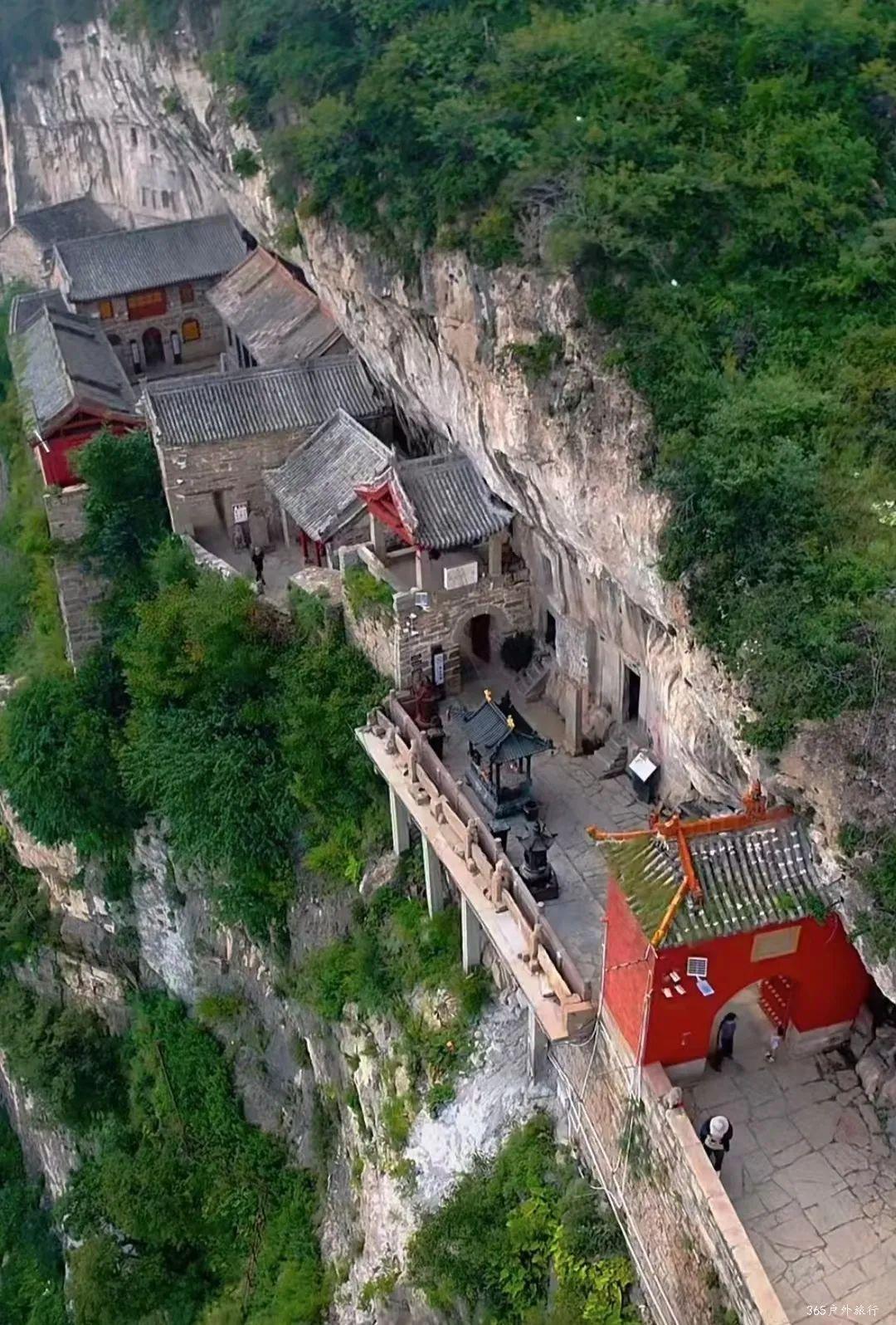 悬崖古刹金灯寺悬空而立,石窟造像古朴精美,隐于太行绝壁之间,禅意悠远;