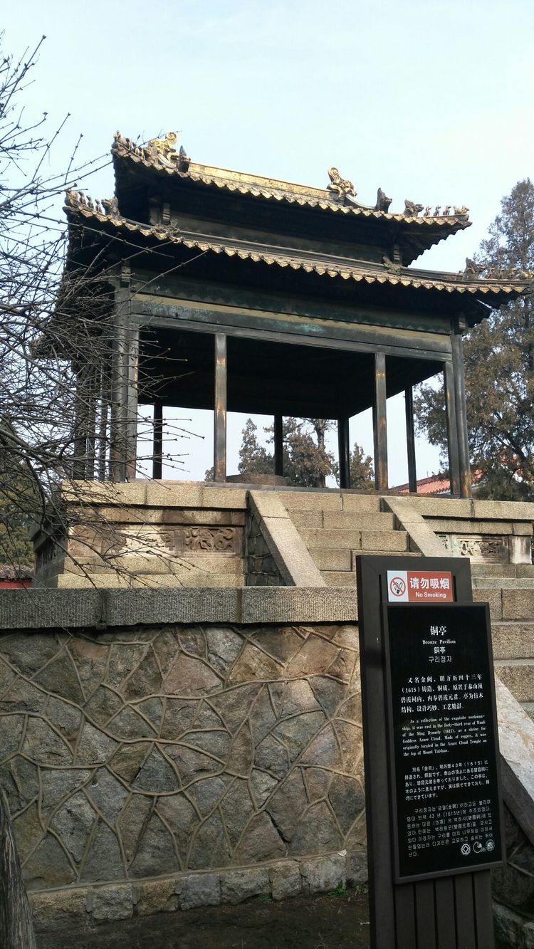 铜亭(又名金阁),明万历四十三年(1615年)铸造,铜质,原置于泰山顶碧霞祠內,内奉碧霞元君,亭內仿木结构,设计精巧、工艺精湛。