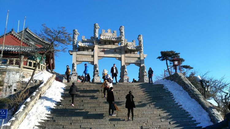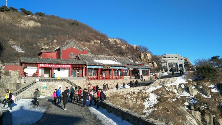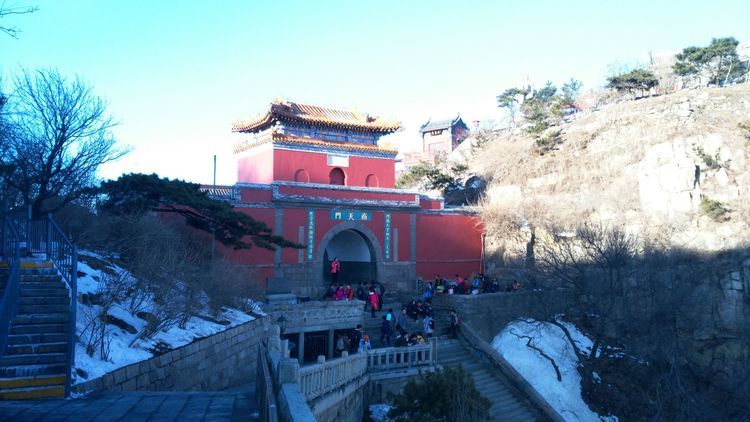 从岱宗坊途径红门、斗母宫、经石峪一路向上到达“中天门”,这是通往玉皇顶路线的一半路程。