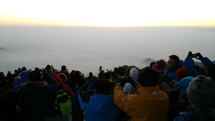 2017年元旦的凌晨,上百游客聚集在玉皇顶的东坡上,大家举目远望,心怀期待,迎接新年第一缕曙光。