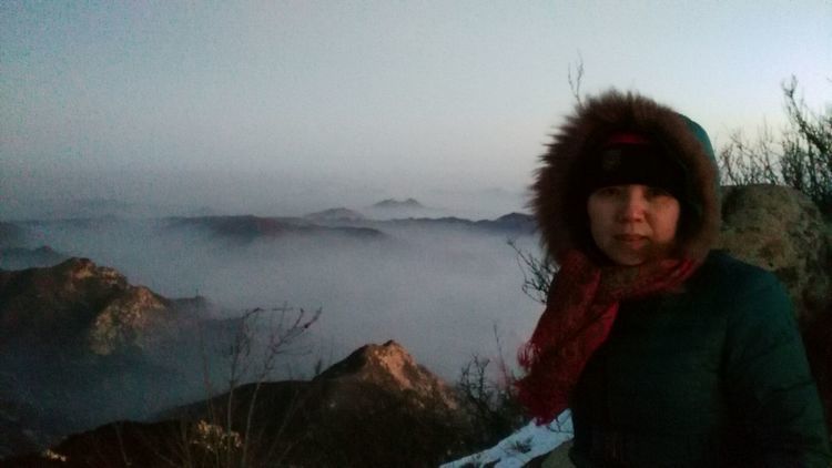登顶后,远远望去,云山雾罩,山峦起伏,怪石嶙峋,美不胜收。她情不自禁地招呼大家:“快来看啊……”。
