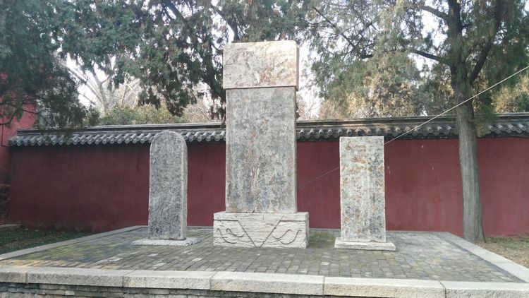 中间那块石碑上雕刻了一幅精美的图画,那是乾隆皇帝唯一的石刻绘画,其中清晰描绘了清朝期间“汉柏”郁郁葱葱的景象。