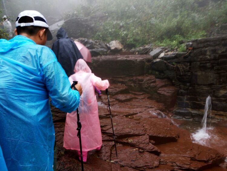 老天下起了毛毛细雨,虽不算大,架不住一直下个没完,山路越来越滑。就在大家闷头前行之时,女儿突然不走了,还要往回返。