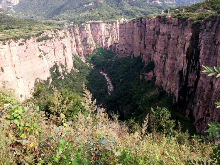锡崖沟红岩大峡谷,中国的典范国内罕见,与美国的红岩大峡谷相似。绝壁深约130多米,总长40多公里,如刀劈斧剁,岩石色泽赤红直立90度而下,“四世同堂”,景色壮观,气势宏伟!