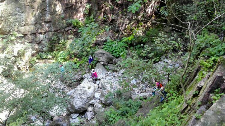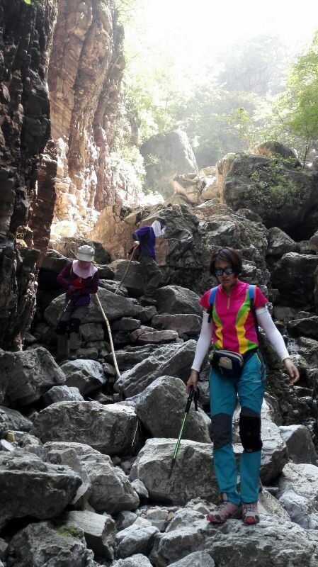 经过一天的车船颠簸,16日晚入住农家。17日第一站穿越“太行之魂”王相岩——桃花谷。
