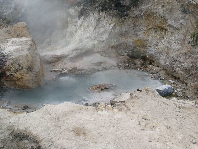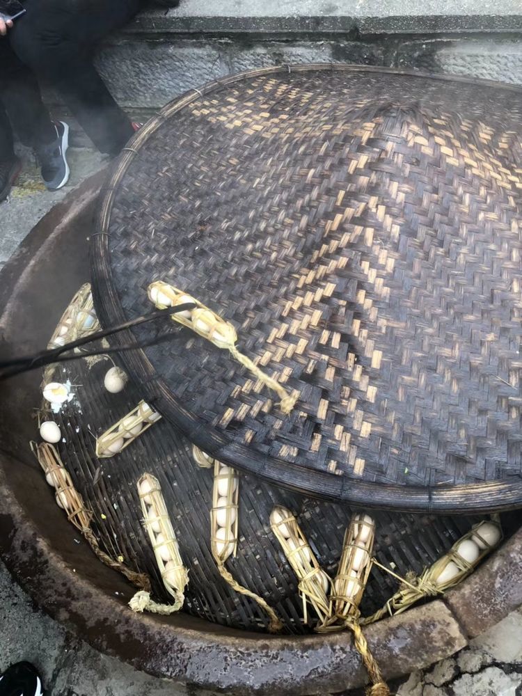 滚滚冒泡的各处温泉,很多人拎着一串串鸡蛋,等着温泉水煮食