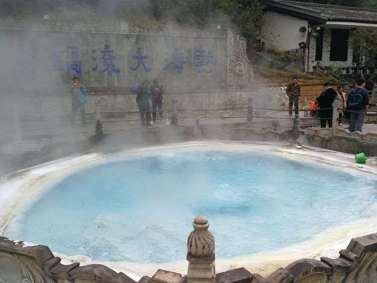 腾冲是我国三大地热区之一,约有温泉80多个,沸泉遍布各地,尤以热海最有代表性,是中国第二大热田,由热海石、大滚锅、浴谷、怀胎井、珍珠泉、美女池等构成,最高水温102℃,是中国地热疗养的最佳之地。热海气泉热泉很多,其中最为壮观的就是大滚锅了。