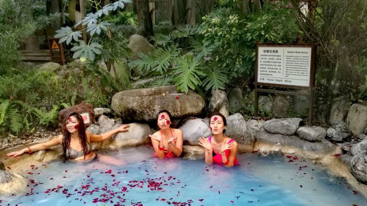 温泉水太赞了,硫磺原池的水滑滑的,我们说可以装瓶做沐浴露了