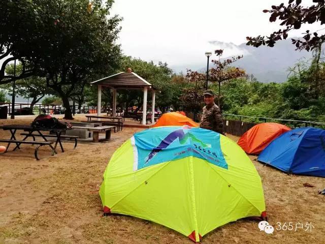 机场s1公交巴士到东涌,再换成3M公交到罗屋村下车,步行五六分钟即到期待已久的贝澳五星露营地。虽然天色已黑,也是兴奋不已。营地办事处登记后(无需预约)便在合适地方搭建帐篷。卡位已满,我们选择在偏东卡位以北的地方。