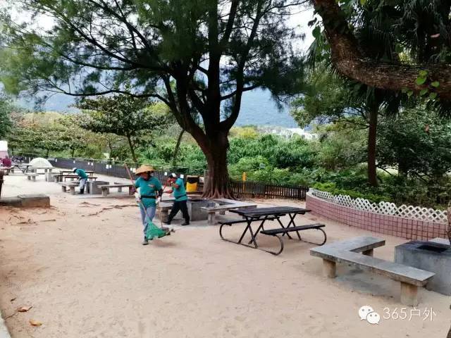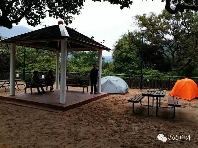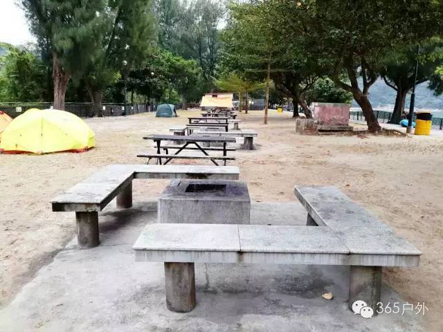 贝澳营地是政府为当地人设计的休闲放松烧烤的地方,归政府下面的康文署管理。整个营地有52个营位,沿着海滩铺设。1-40的营位设计是:靠海滩一面是营位,隔条马路的对面是烧烤炉及用餐桌;而41-52的营位却是营位跟烧烤炉及用餐桌在同一边,与海隔条马路。每个营地是一个卡位,用钢管拦起来。这样大家不会在营地上乱搭帐篷,比较有秩序,贝澳营地旁边,还有一个沙滩,很多当地人来游泳,如果露营者乱搭帐篷,会占了沙滩的位置。每个营地里有一棵树,一张木桌子,两张长凳子,标准配置,每个卡位的对面,隔着小路,有一个烧烤炉,做饭用。每个卡位的标准配置是,卡位内桌椅一套,卡位内大树一棵,卡位对面烧烤炉一个,桌椅一套,路上路灯一个,垃圾箱一个,有的卡位,还有凉亭一个。不用担心会和别人抢炉子用,抢凳子坐,每个卡位都设施齐备,各用各的。卡位对面的桌子,凳子,属于各个卡位的标准配置,做完饭后,端到这里来吃。烧烤炉是石头做的,做饭可以,坐在上面吃饭,就太凉了。