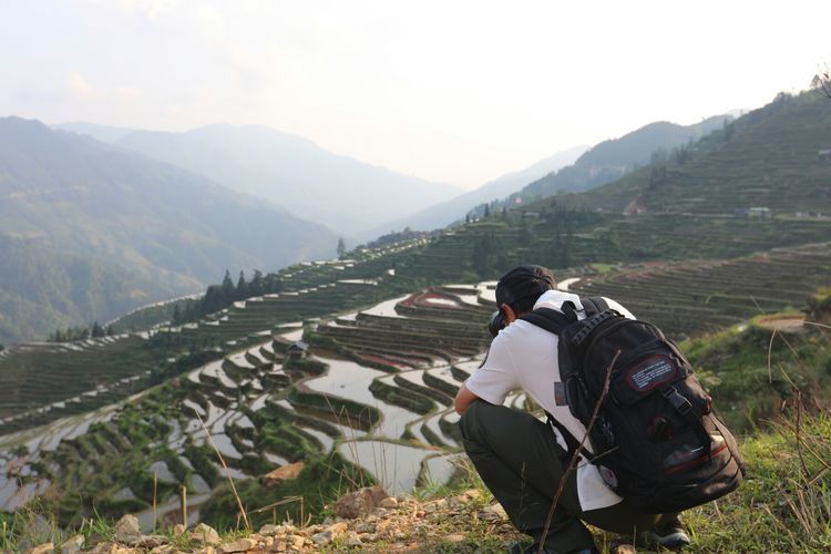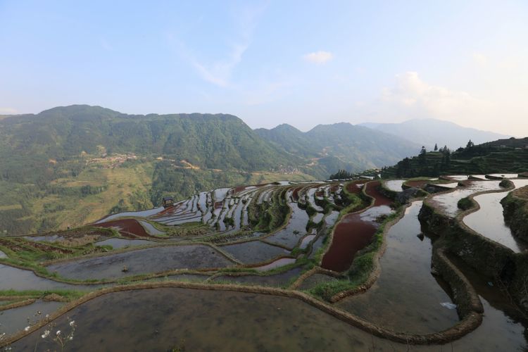 跟随十二哥的365户外队伍在太阳落山之前赶到了加榜梯田,落日余晖温柔的俯瞰着梯田。这里与一路走来看到的小梯田相比大的让人兴奋!