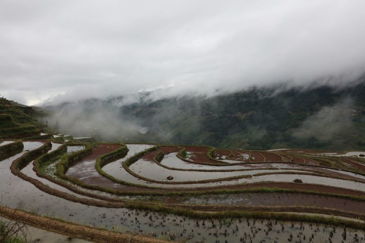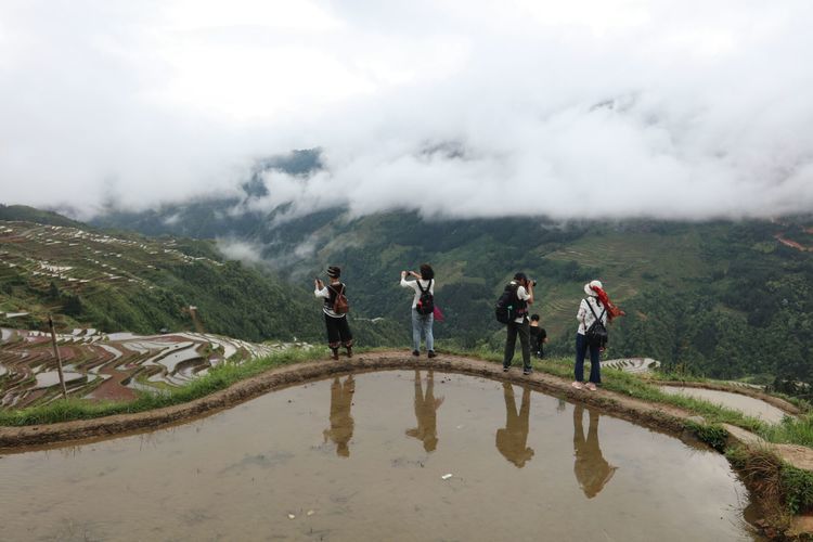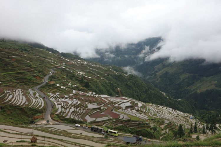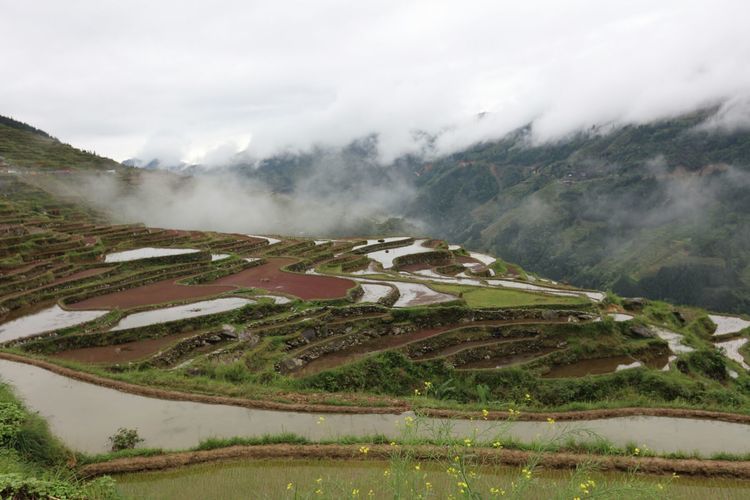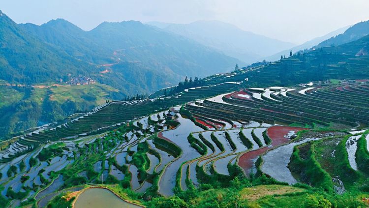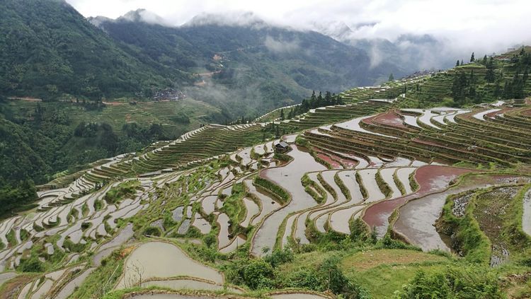 加榜梯田位于贵州省黔东南苗族侗族自治州从江县西部月亮山腹地的加榜乡东北面,距县城80公里,是中国最好梯田之一,梯田中散落着苗乡特有的吊脚楼。是苗族人世世代代留下的杰作。苗族是“稻饭鱼羹”的民族。路两侧的党扭、加页、加车、从开、平引、加榜及加车河对岸的摆别、摆党等村。加之梯田紧靠加车河,而且常年雨水充沛,无论春夏秋冬,每天清晨,一层层云雾从河边缓缓升起,慢慢的、慢慢的,这些美丽的梯连同梯田边上的苗乡吊脚楼全都被笼罩在云雾中,远远望去,那些依稀可见的吊脚楼,若隐若现,飘渺悠然,让你在陶醉中生起一种身在幻境的错觉。