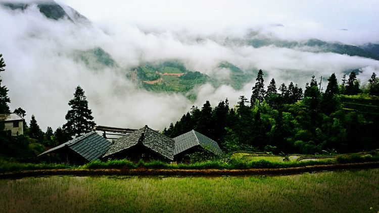 清晨,拉开窗帘的一刹那!美呆了!下了一夜的雨渐渐的停了,云雾缭绕在山谷中,形成了美妙的画卷!