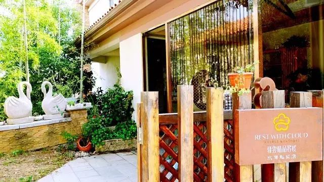 驿雲客栈桐庐水岸私墅店,木篱笆小院子,恬静的入口。