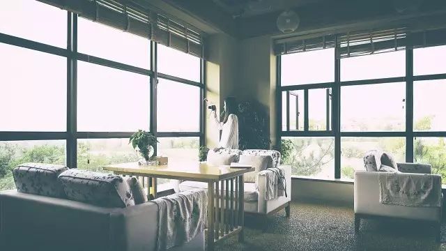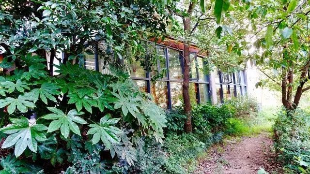 能吸引我的,是图片里看到的玻璃窗,和窗外绿意饱满的树。