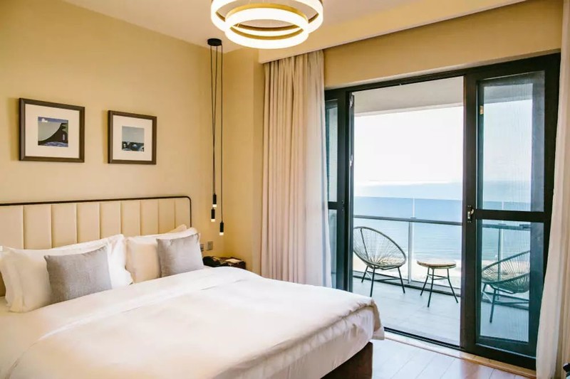 “为海而生”的度假胜地,最大的噱头莫过于无敌海景,酒店的高层以复式海景套房及豪华复式海景套房为主,落地窗外便是广阔的黄金海岸海景,眼前没有其他高层建筑遮挡,颇有坐拥整个海岸线的疏阔之感,“网红建筑”阿那亚礼堂也尽收眼底。