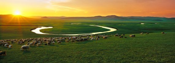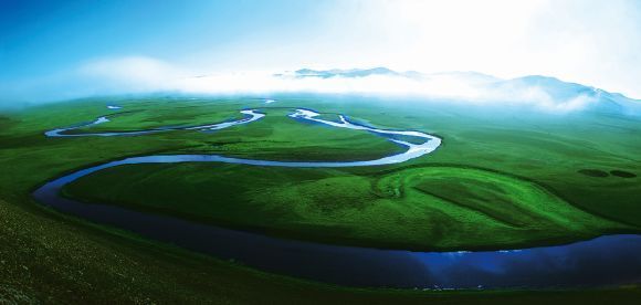 蜿蜒的清河是缓缓地流向你心中的诗魂,从容不迫地嚼着青草的绵羊与交颈相嬉的骏马是夺目的诗眼,而那绵延无边的青草地便是缠绵你心间的不尽诗意,整个心情连同爱人完全氤氲于这天地造化的诗情画意之中。