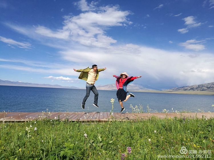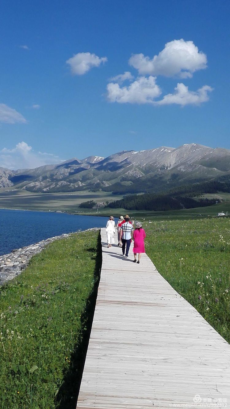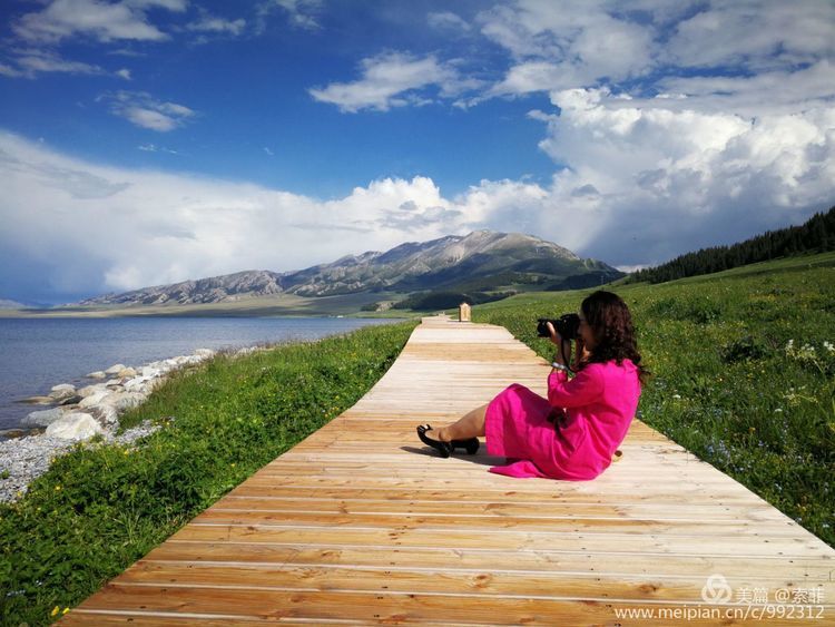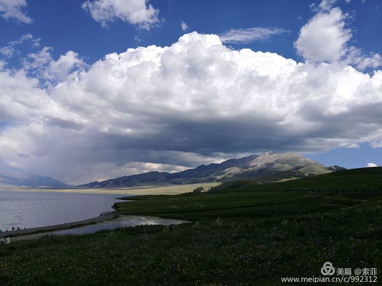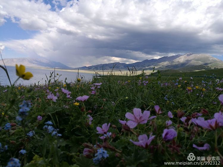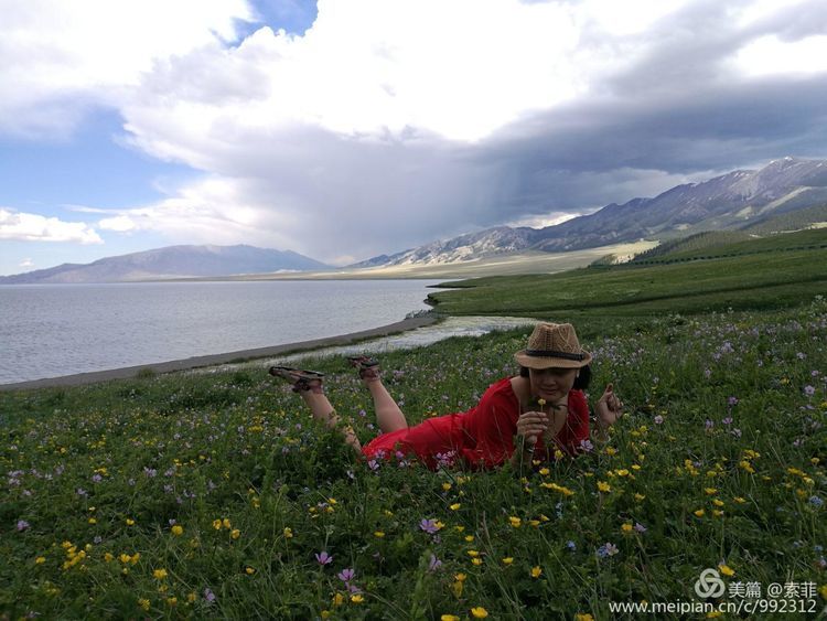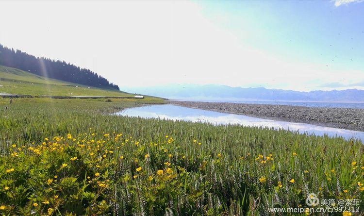 一泓泛着柔和波光的碧水镶嵌在天地之间,脚下绿草如茵,正是山花浪漫时…