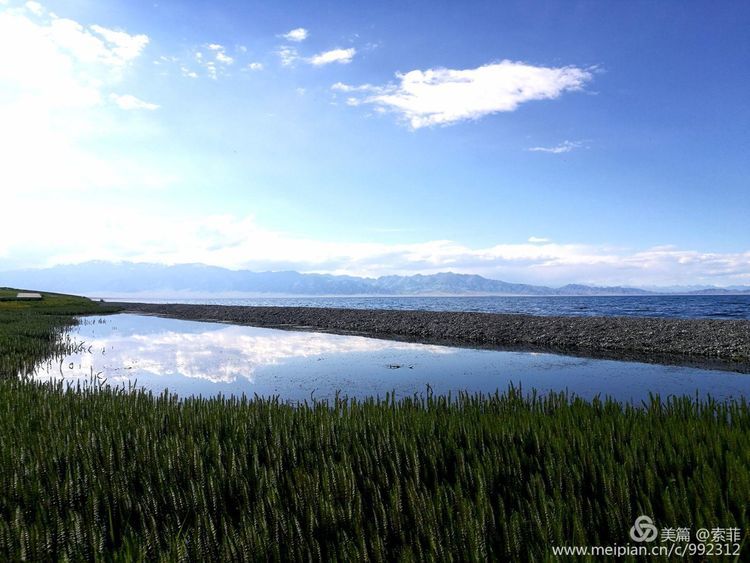 云卷天边,湖水拍岸,以深邃疏朗的蓝天为背景谛听湖水的声音,显得格外安详、宁静。我就这样静静地面对着这一片蓝,这一片天光云影,一次次被她震撼着、荡涤着。