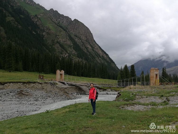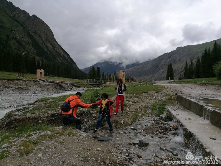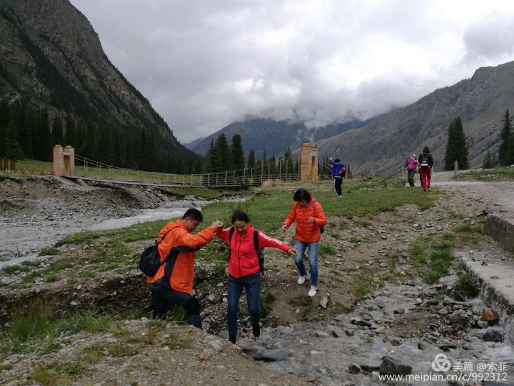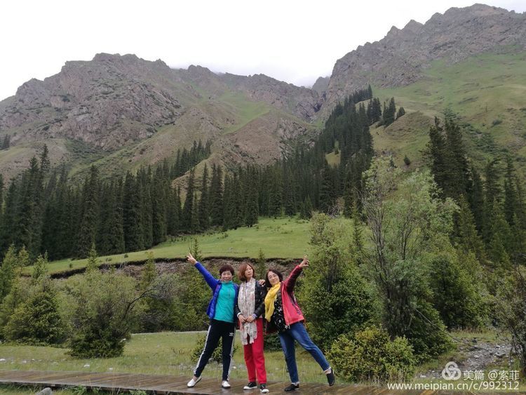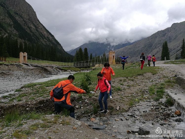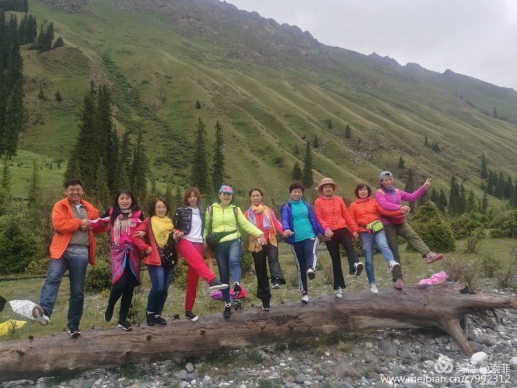 天上下着蒙蒙细雨,我们一行11人,行走在昭苏的夏塔古道上。