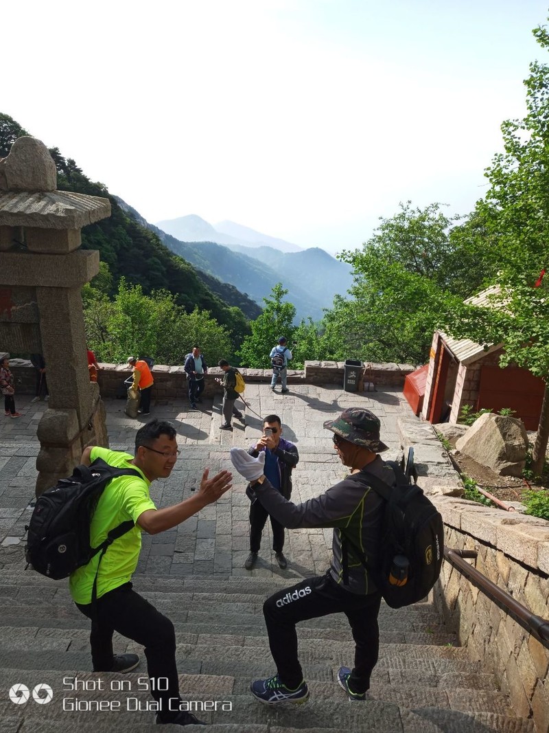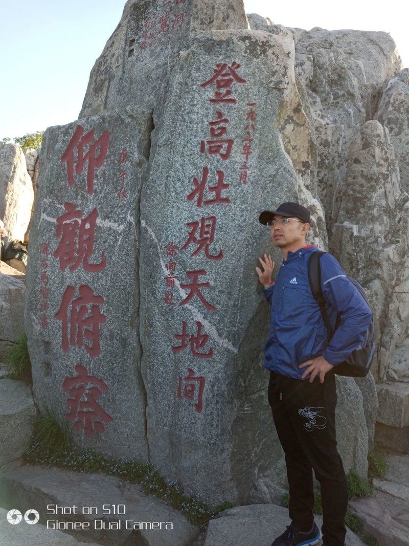 登高望远驻足泰山之巅!小马哥心里美滋滋的!