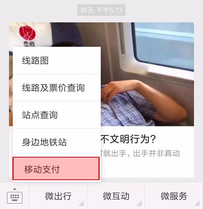 点击菜单栏中“微出行”→“移动支付”,
