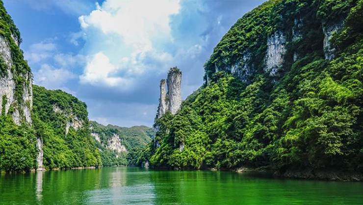 㵲阳河属于长江支流的支流,全长258公里,具有“长江三峡之雄,蜀地峨眉之秀,桂林漓江之美,阳朔胜景之幽”而名冠天下。㵲阳河的水多是溶洞流出,不仅干净,还非常碧绿。“孔雀开屏”乃㵲阳河标志景点。或许因看多了各处的山山水水,独步不觉得㵲阳河有多惊艳。