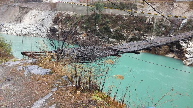 怒江上过去人们靠溜索交通,现在政府给修了几十座这样的吊桥