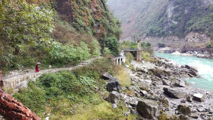 怒江大峡谷,从丙中洛到六库有200多公里。水势一直汹涌澎湃。怒江滩险流急,不能行船。两岸高山险峻,植被茂密。特别是最上游的丙中洛,真的是人神共居的地方