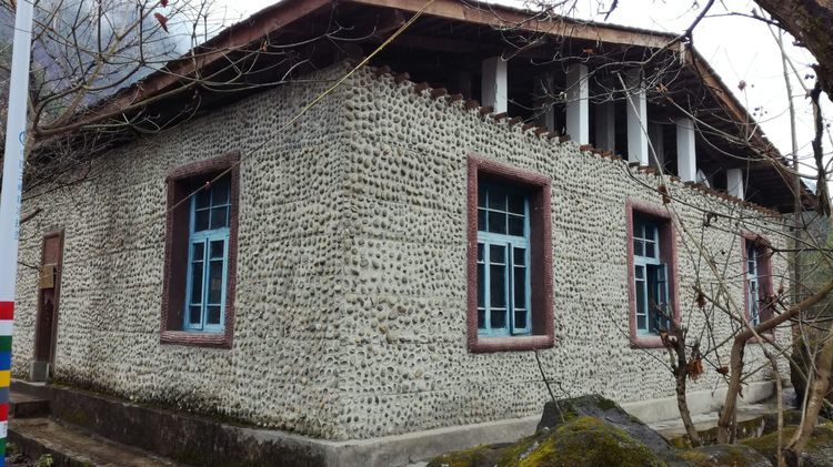 桃花岛上的房子用鹅卵石贴面。整个桃花岛的田地里都是鹅卵石。我想这里曾经是怒江的河床吧?