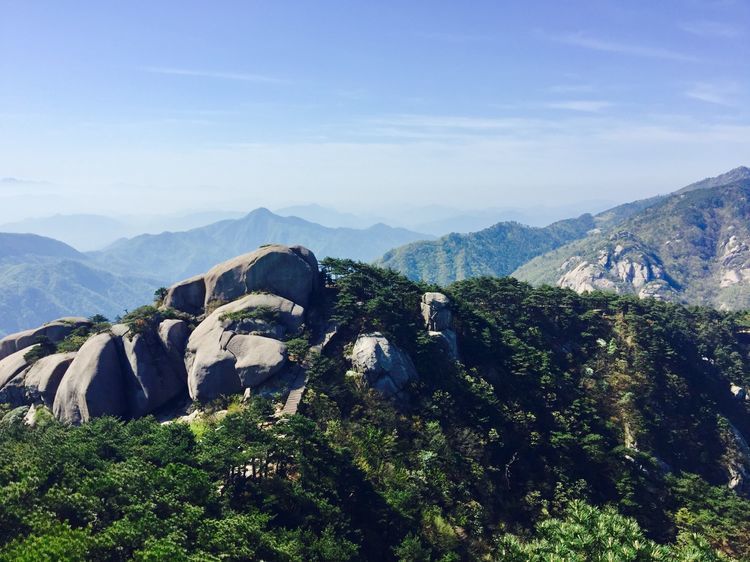 九华山为皖南三大山系之一,主体是由花岗岩岩体组成的强烈断隆带。其边缘地区除部分为沉积岩外,大都是由花岗闪长岩组成的褶皱断块轻度隆起带。来来来,感受一下
