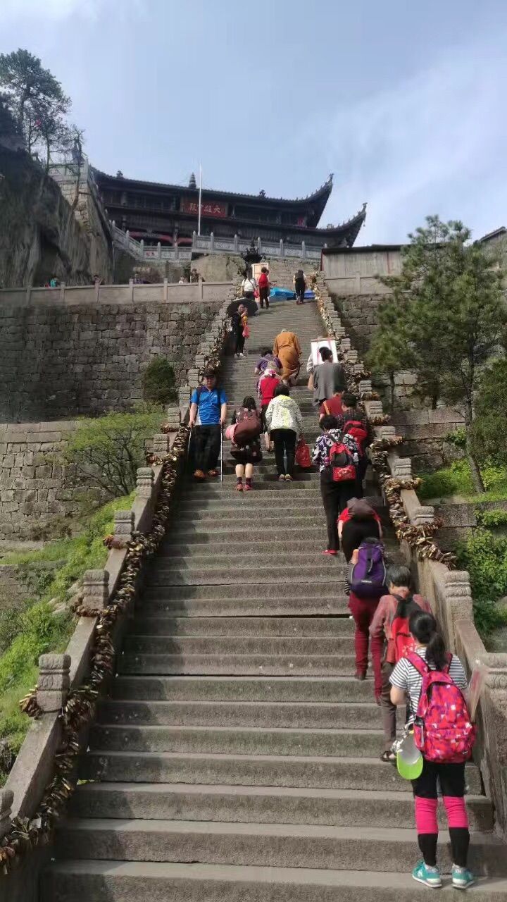 九华山之旅,我们全体驴友18人分成两组,10人走野路,全程穿越;8名弱驴乘缆车登上花台(含我),以此为起点开启去往天台的徒步旅程♀️