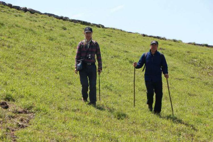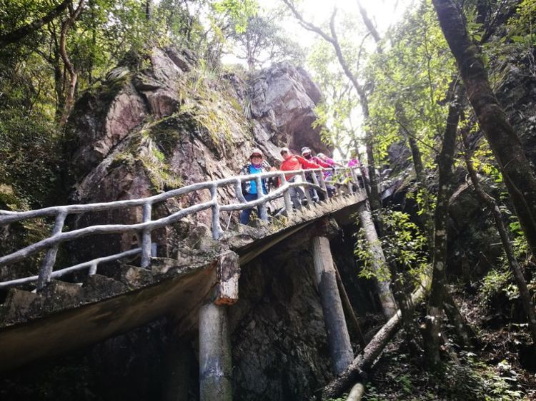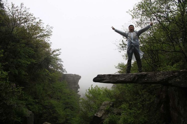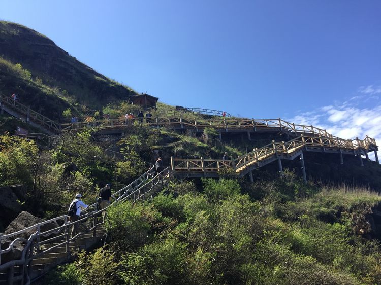 看上去挺潇洒,其中艰辛困苦只有自己知道,正所谓上山一身汗,下山脚软腿打颤。翻山越岭徒步四小时,我们几位弱驴终于到达天台。