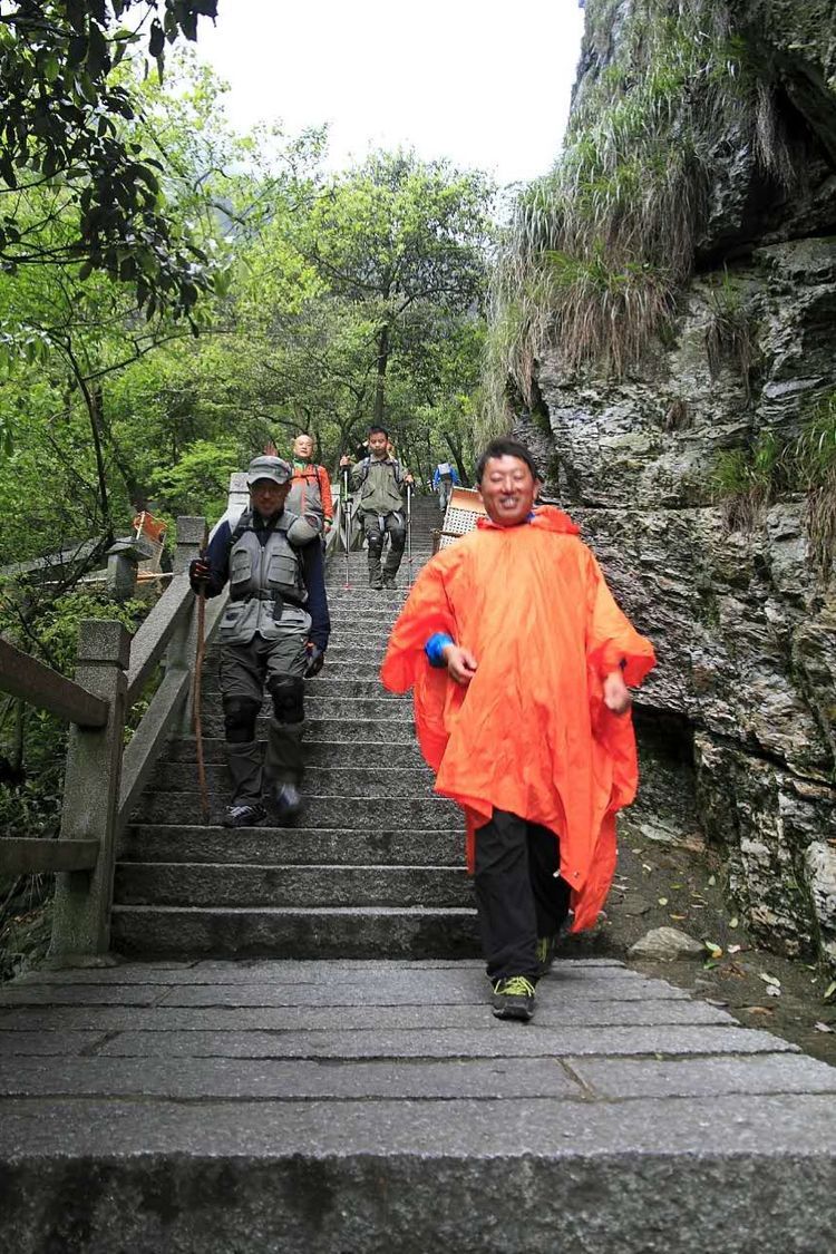 登山中,看看我家老帅哥已然成为落汤鸡,颜值直接跌到地板上