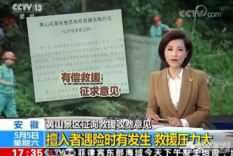 黄山景区就有偿救援实施办法征求意见