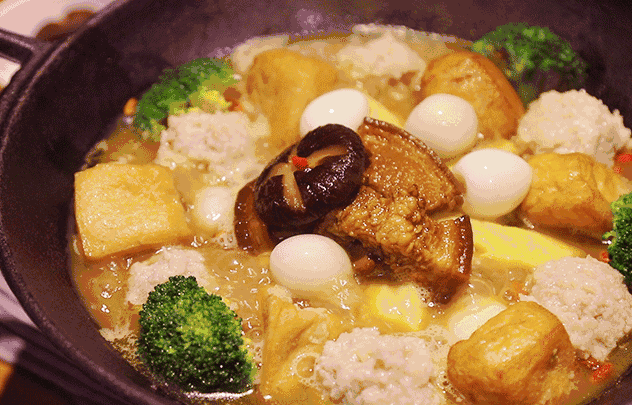 安徽山清水秀,重视火工,黄山人的“盆菜”一品锅,跟盆菜一样有条不紊——一层鸡、一层鸭、一层肉、一层油豆腐,点缀着一些蛋饺,底下是萝卜、青菜,这是胡适宴客的招牌菜,炖煮的味道可以绕梁三日。
