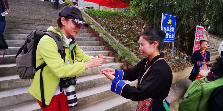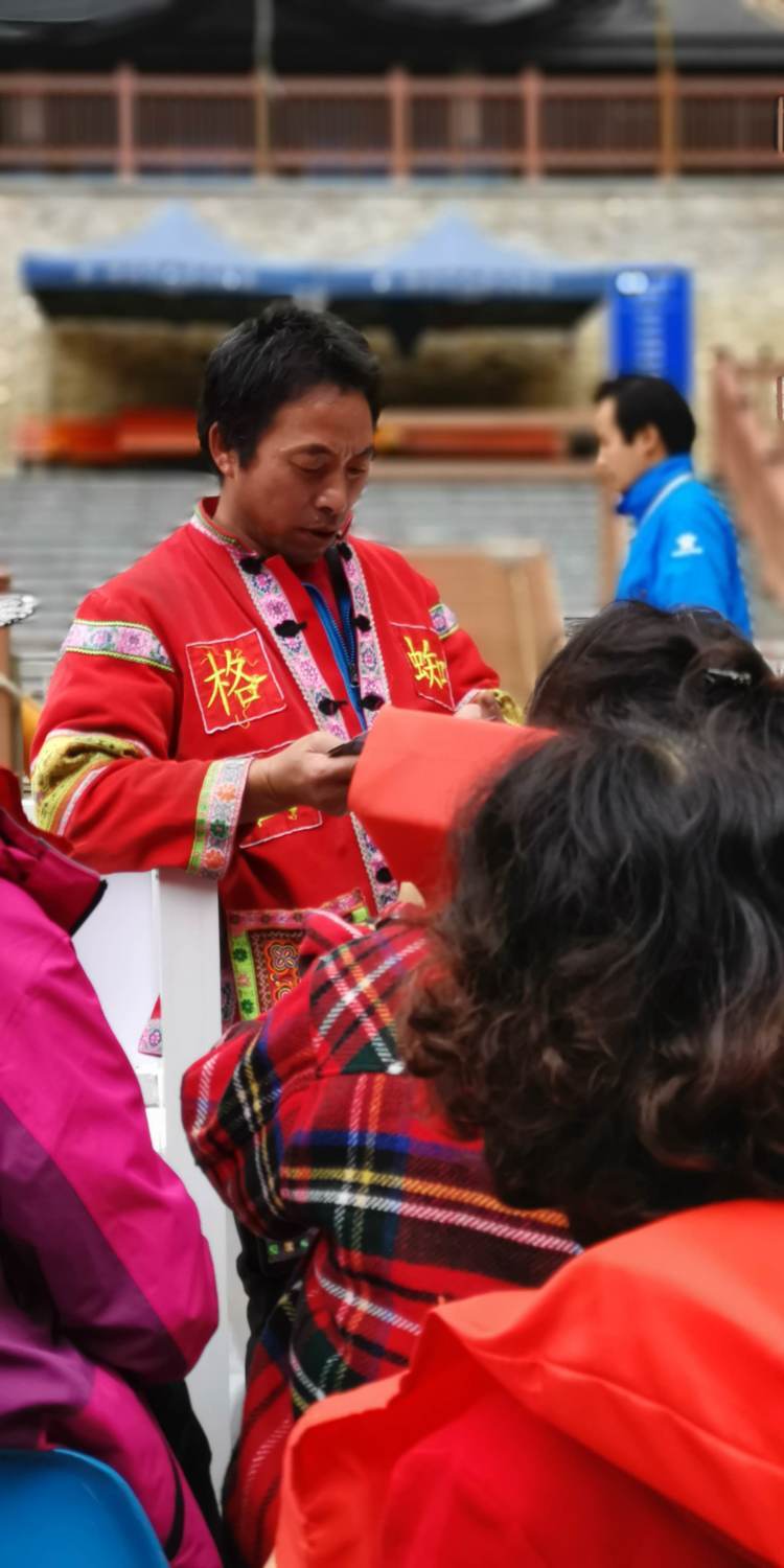 船刚刚到达大河苗寨码头,就有欢迎我们的仪式了,献上迎客酒