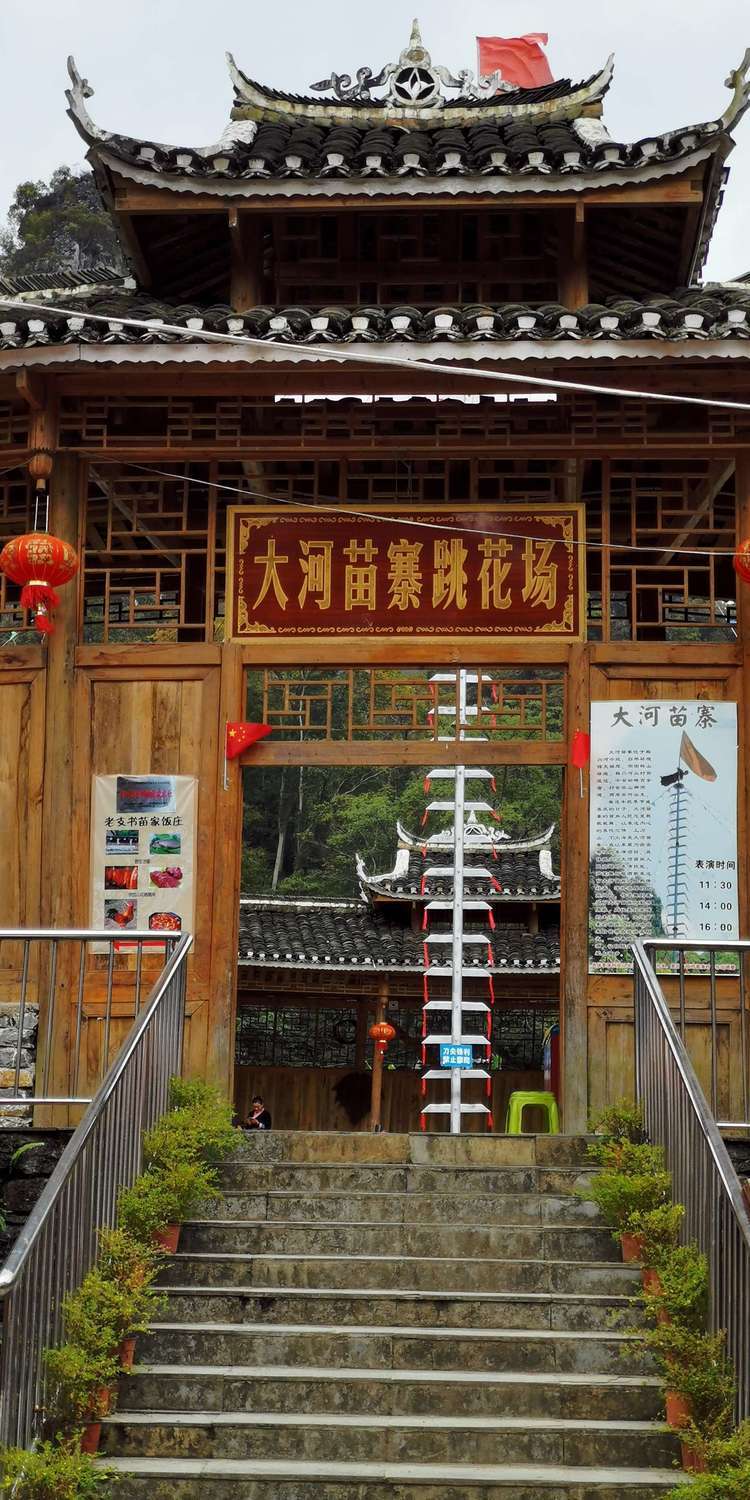 沿跳花场向里面大概500多米,说是可以看到苗王剑和变色池