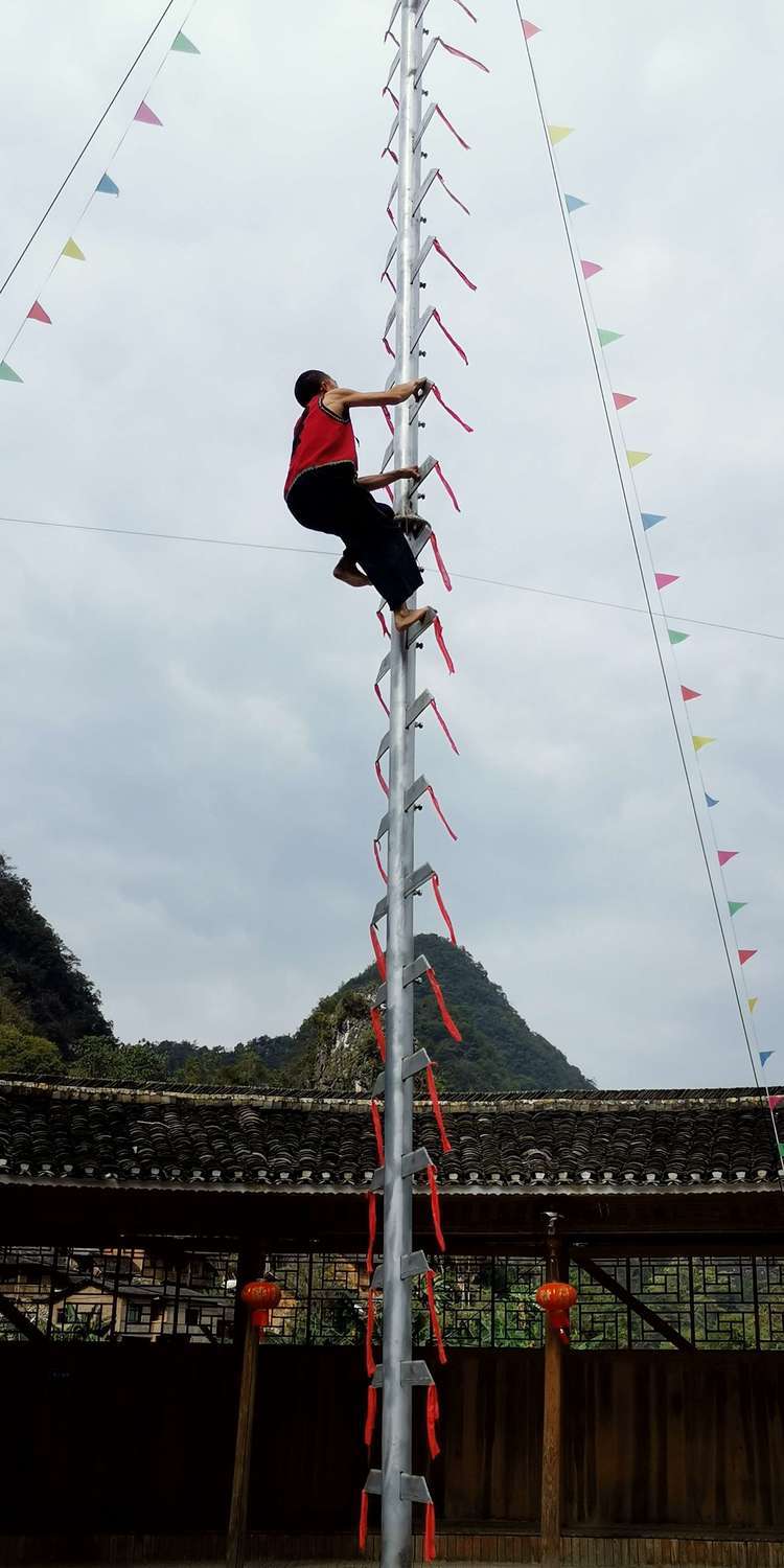 上刀山表演看的人心惊胆战,不忍心直视