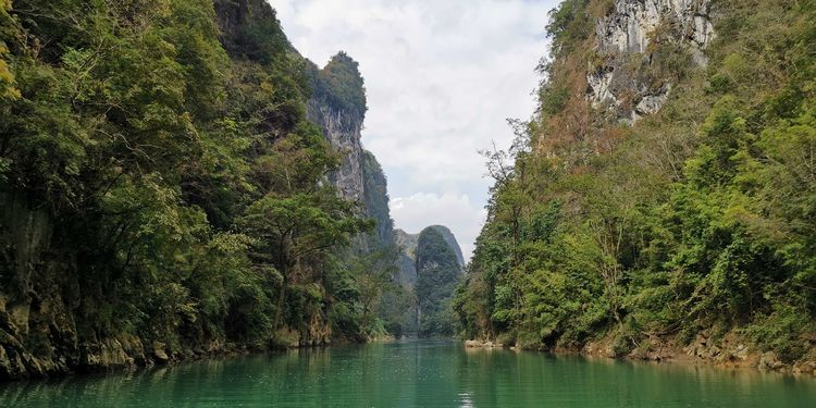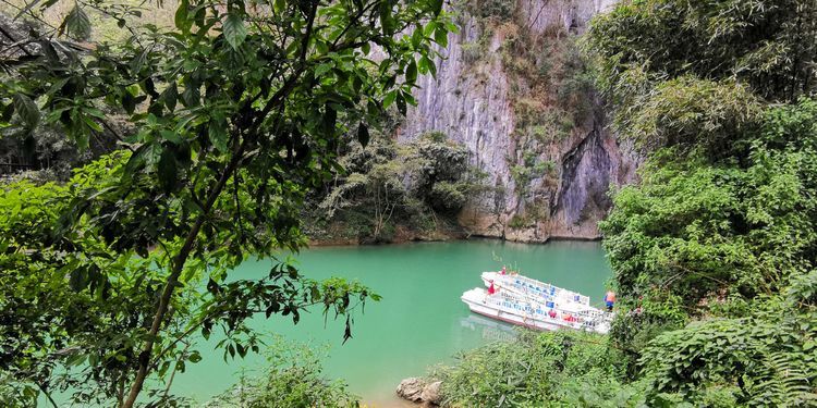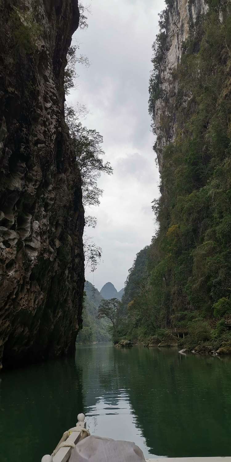 我们先探访大穿洞,沿格凸河一步一景,没几步路就来到河边,我们乘船近距离看燕王洞,说是运气好的话可以看到万燕归巢。