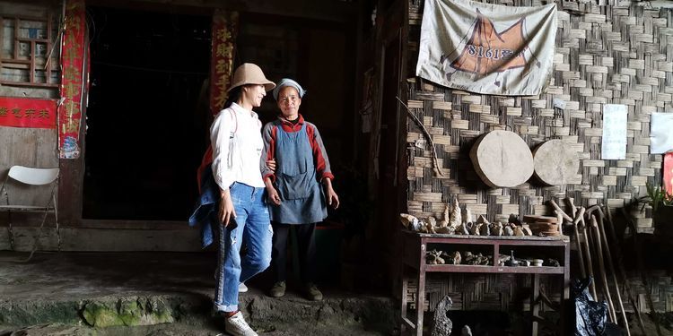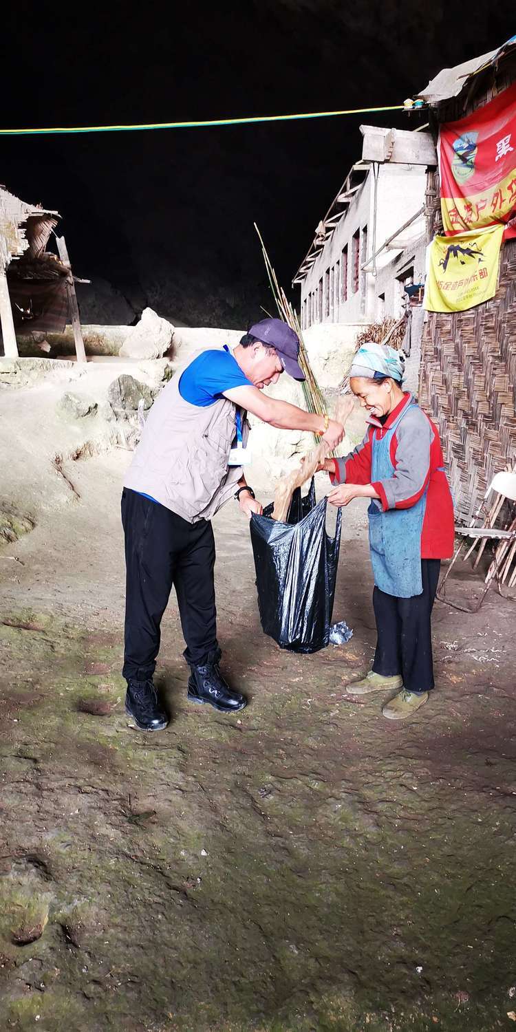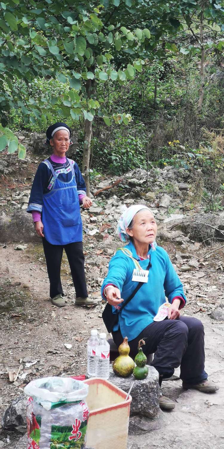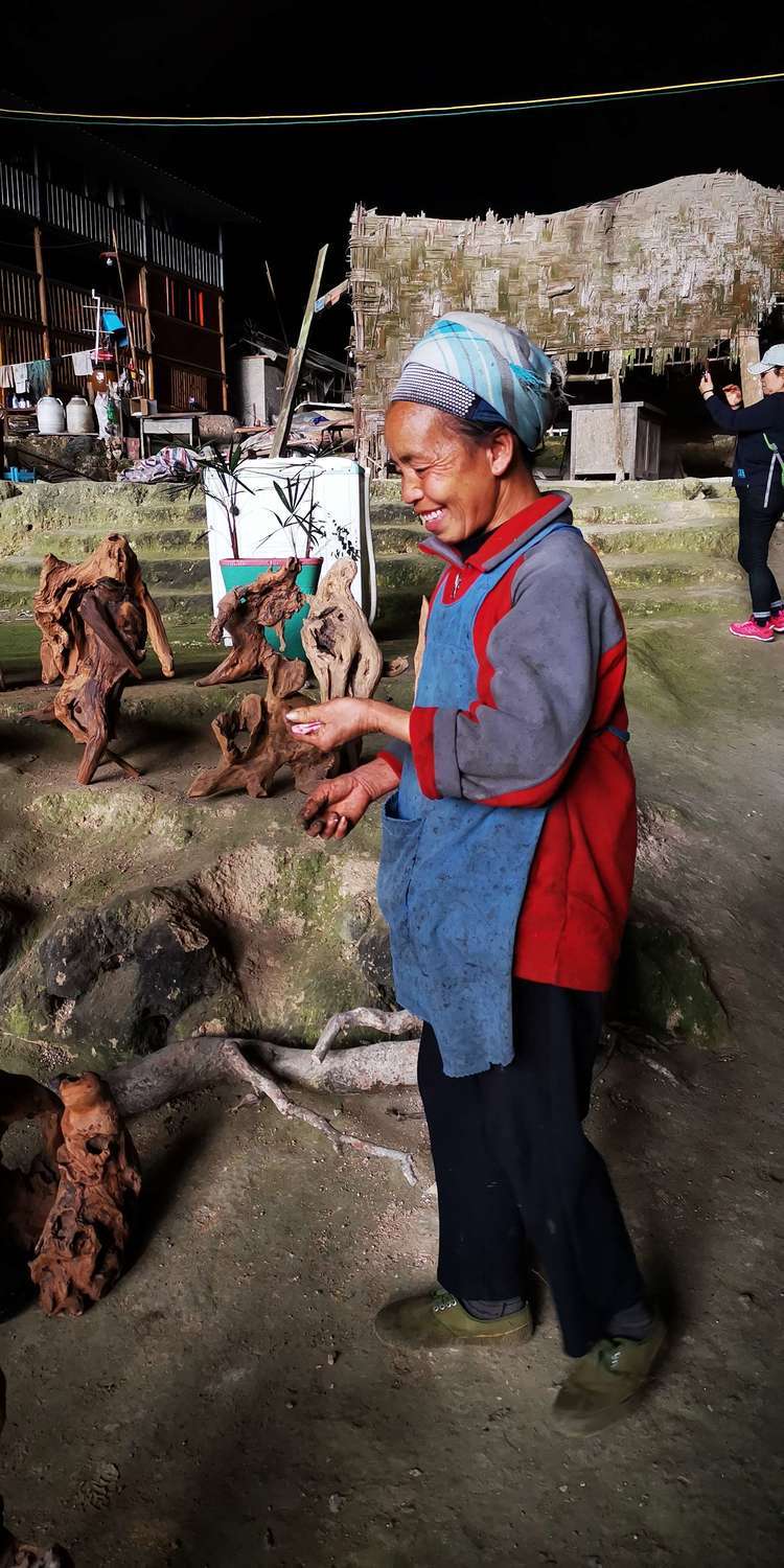 我们在洞内逛了一圈,这个阿婆背着一篓猪草回来,十二哥选了几样随了眼缘的根块,阿婆明显的很开心。